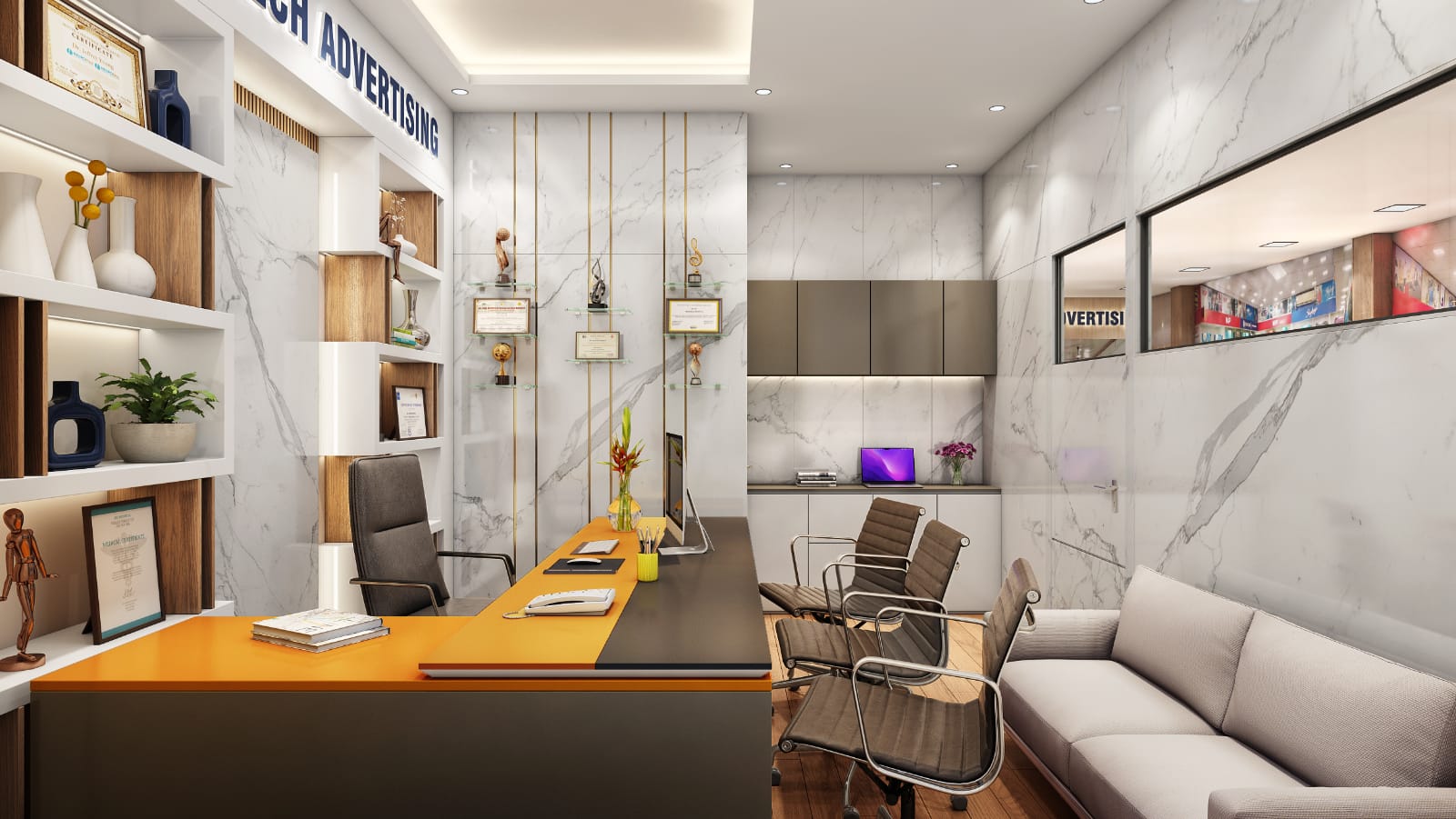 Our office interior design services are tailored to create a productive and inspiring work environment. We understand the importance of a well-designed office space in enhancing employee productivity and overall business success. Our team of experienced designers will work closely with you to understand your company's brand, culture, and specific requirements. From concept development to final execution, we handle every aspect of the design process with meticulous attention to detail. Our services include space planning, furniture selection, color consultation, lighting design, acoustic solutions, and more. We aim to create an office space that not only reflects your company's identity but also promotes collaboration, efficiency, and employee well-being. With our office interior design services, you can expect a seamless and professional experience, resulting in a workspace that is both visually appealing and functional.